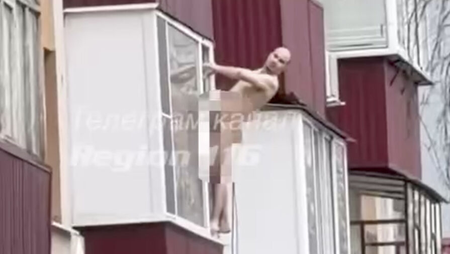 В Татарстане мужчина устроил необычное «проветривание», раздевшись и повиснув на балконе. Видео, снятое очевидцами, опубликовал Telegram-канал «Регион 116 Казань».