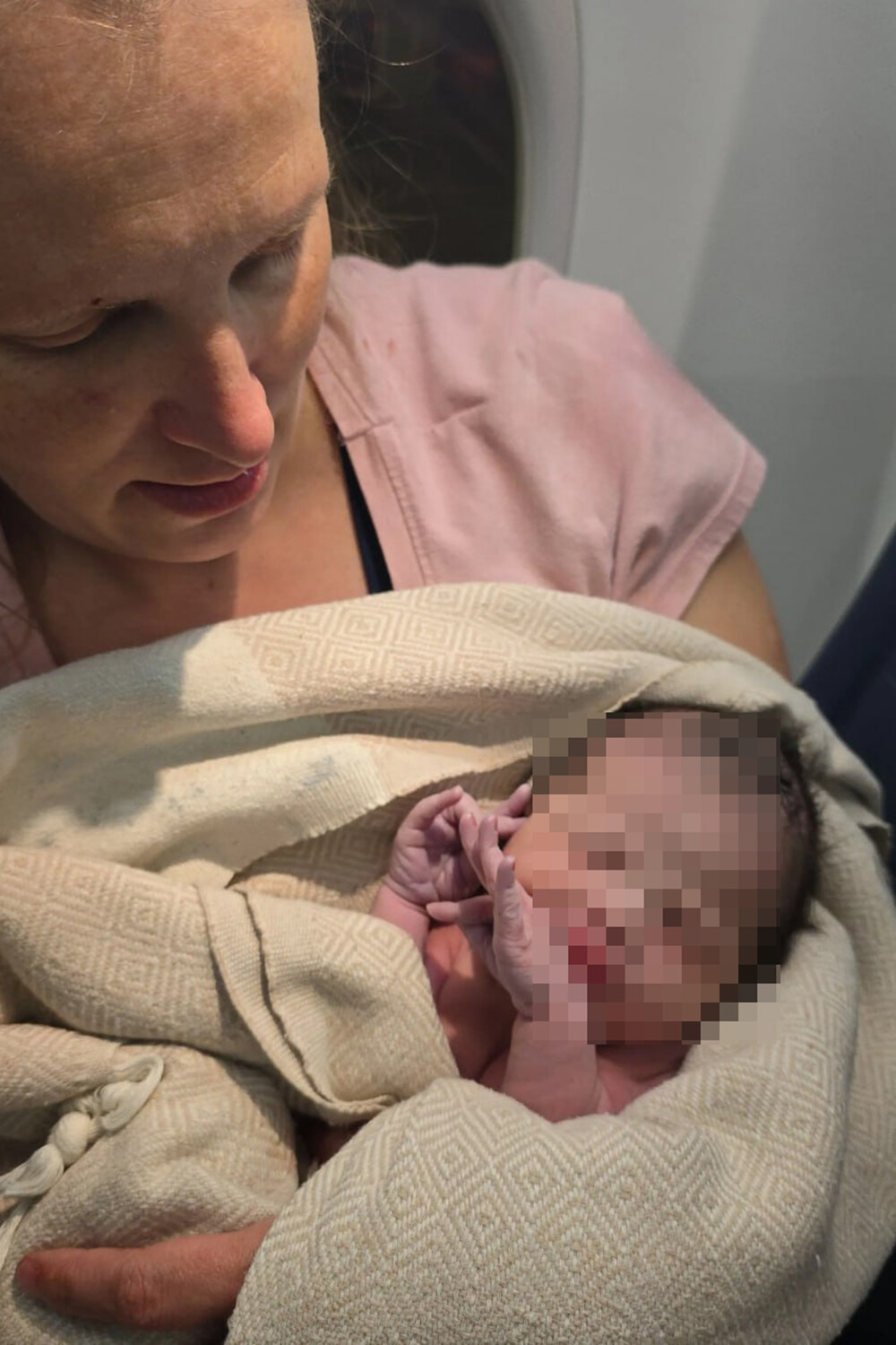 После того, как самолет приземлился, и матери и ребенку была оказана медицинская помощь на земле.