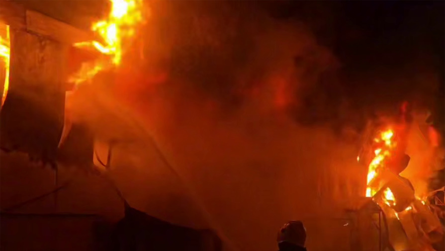 «По прибытии к месту вызова первых пожарно-спасательных подразделений было установлено, что происходит возгорание в складском помещении на площади 2800 квадратных метров», — говорится в заявлении.
