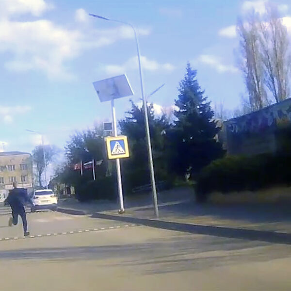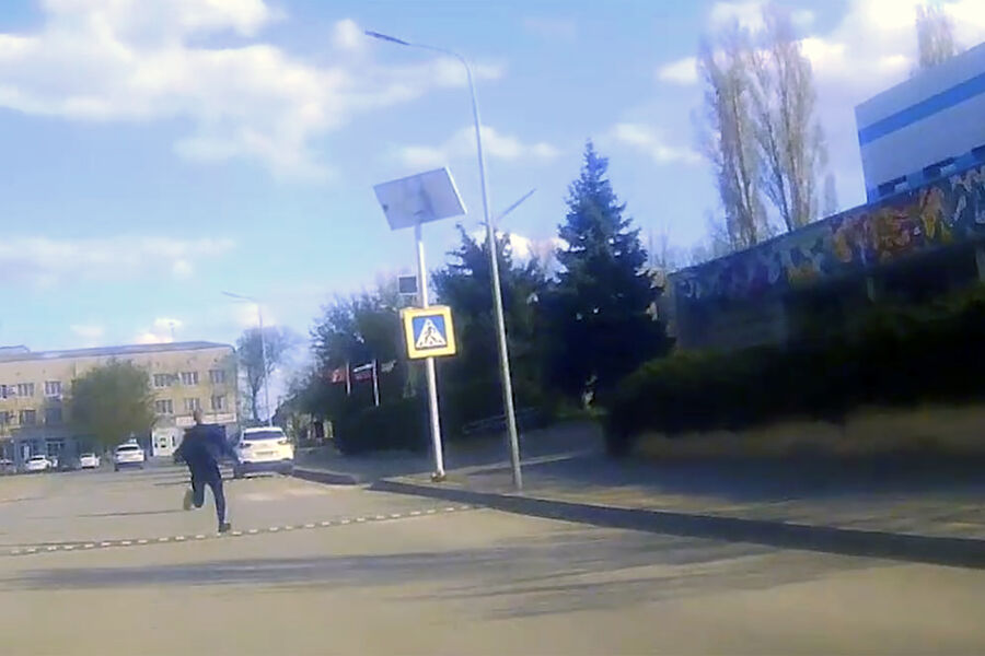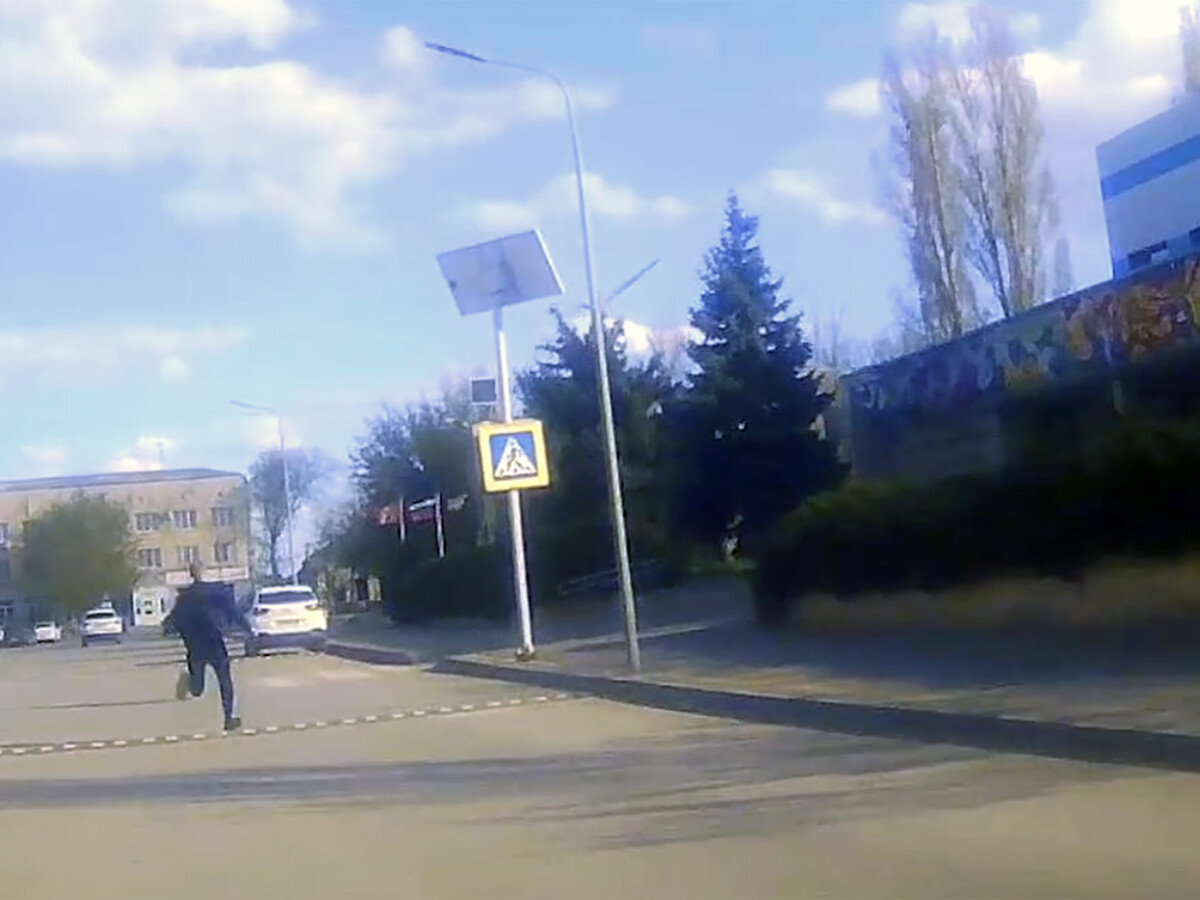Инцидент произошел в городе Ленинск. Очевидцы засняли, как мужчина быстро бежал по улице, несмотря на приближающуюся машину. За ним, с разрывом в десяток метров, следовал человек в форме сотрудника правоохранительных органов.