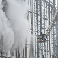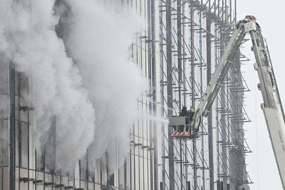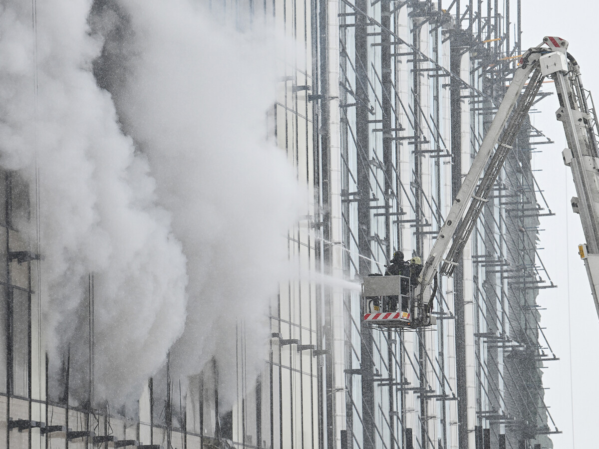 Прораб сообщил, что на момент возгорания в здании находилось около 300 строителей. В экстренных службах рассказали, что наверху могут оставаться до 200 человек.