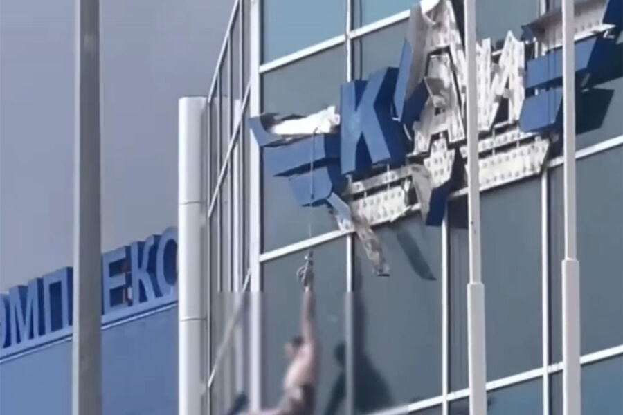 На кадрах с места заметно, как неизвестный в одних трусах стоит на одной из букв, в тот момент как с остальных уже сбиты синие панели. Также некоторые элементы отсутствуют у букв, расположенных выше.
