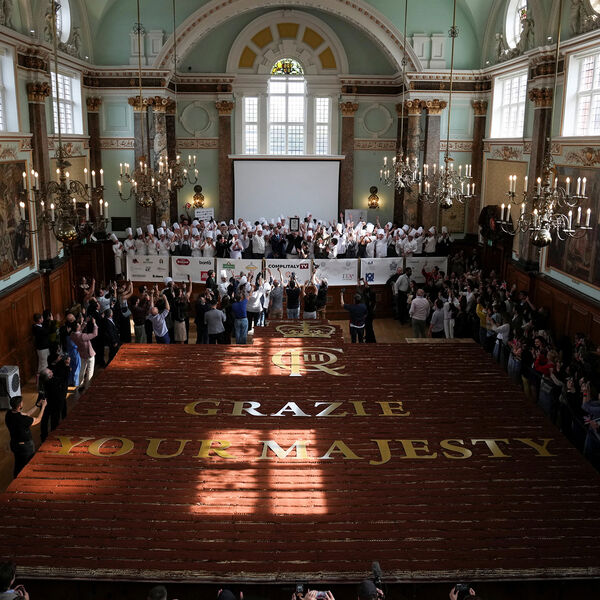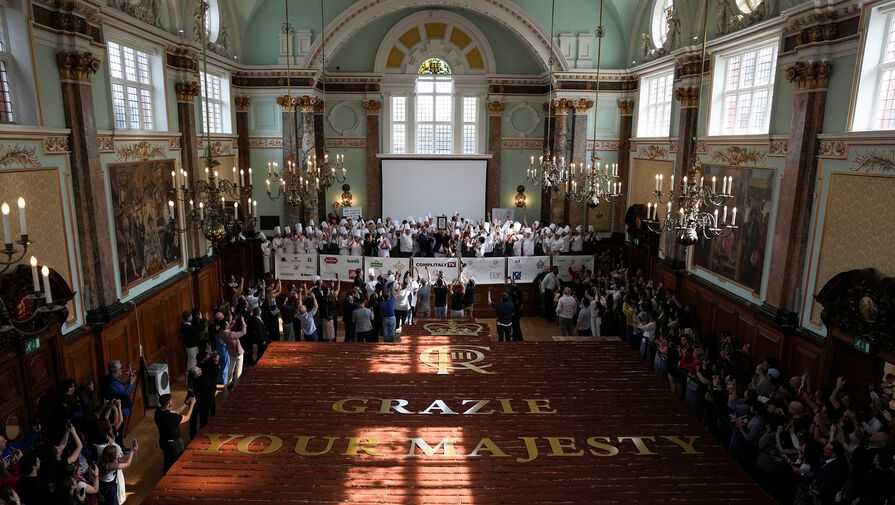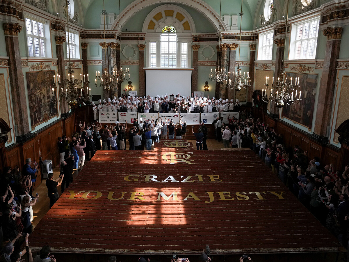 Команда из 100 итальянских шеф-поваров приготовила десерт длиной 440 метров в зале Chelsea Town Hall. Достижение официально зафиксировал судья Книги рекордов Гиннесса.