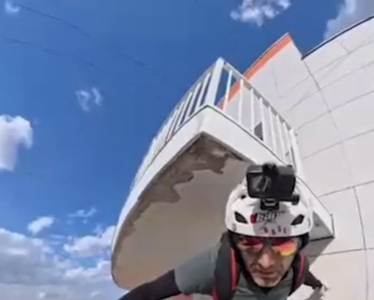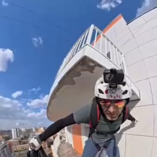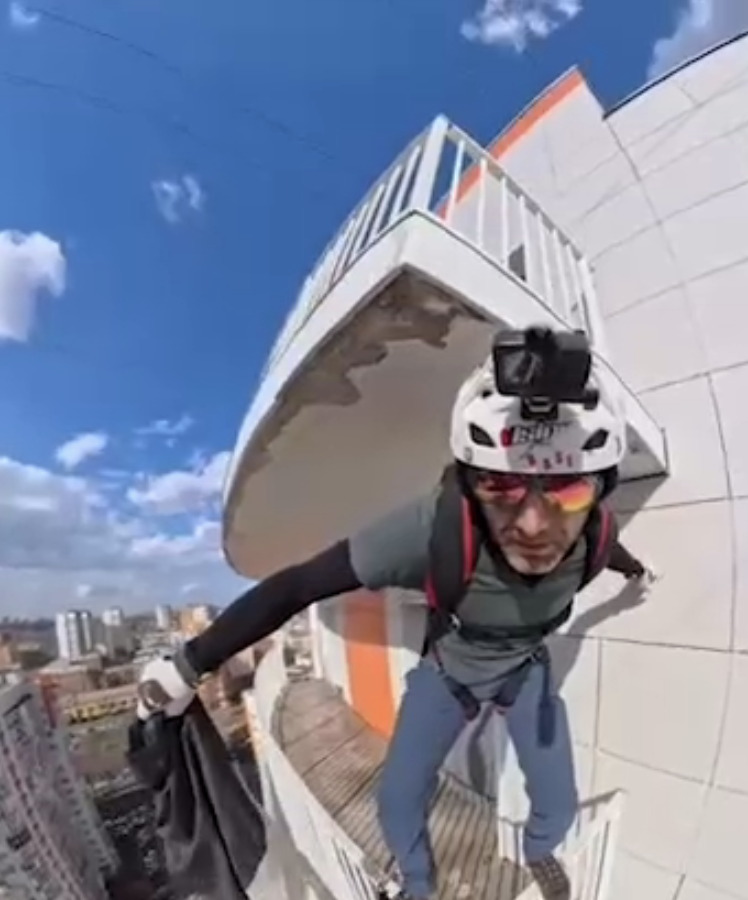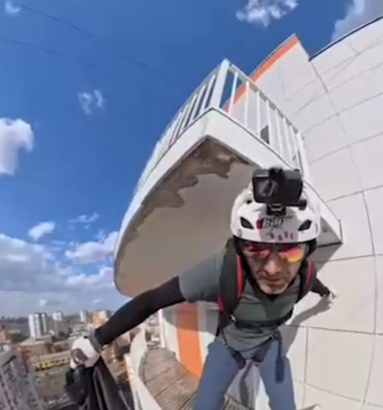 Прыжок с огромной высоты снимался на камеру от первого лица. Кадры полета с высоты минимум в 20 этажей экстремал позже выложил в соцсети.
