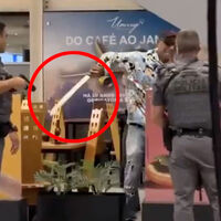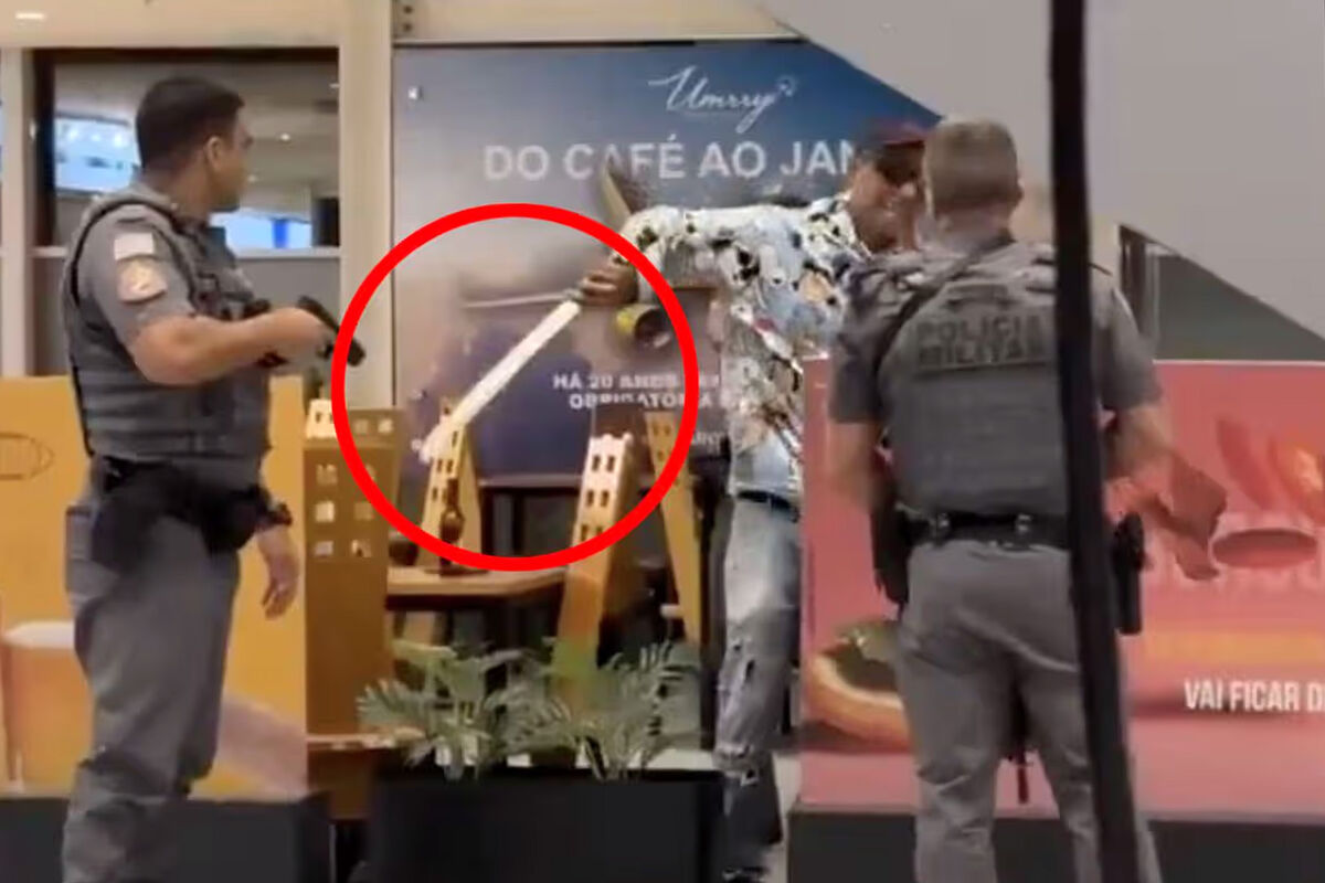 Инцидент произошел в международном аэропорту Виракопос. Мужчина, размахивавший длинным мечом, был обезврежен полицией с применением электрошокера. Кадры, распространившиеся в сети, показывают, как трое офицеров окружают подозреваемого, а после того, как тот внезапно достает с пояса клинок длиной 47 см, один из полицейских применяет оружие.