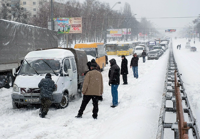 Чрезвычайное положение в Киеве, введённое из-за сильнейшего снегопада, продлится еще неделю. Снег начал валить в пятницу и продолжает идти. Понедельник в Киеве объявлен выходным днем. Главным средством транспорта в столице Украины остается метрополитен, передвигаться на автомобиле практически невозможно. К расчистке дорог и улиц власти привлекли военных, сотрудников МВД, а также спецтехнику Минобороны. По данным метеорологов, за первые сутки непогоды в Киеве выпало 50 сантиметров осадков при месячной норме 47 сантиметров. Это самый сильный снегопад в столице Украины за последние сто лет.