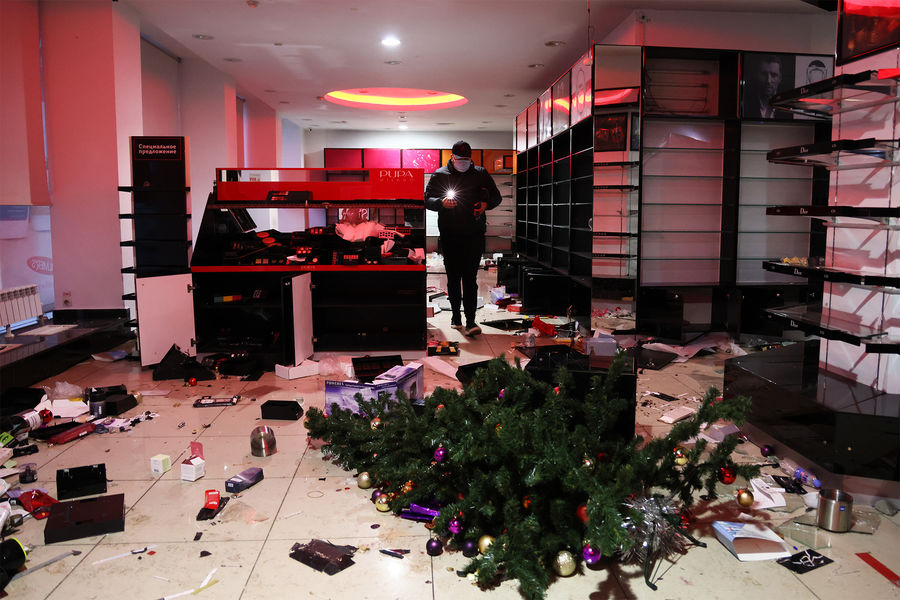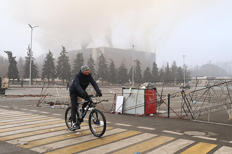В Алма-Ате протестующие подожгли и захватили здание администрации города. Только за ночь на 6 января митингующие разгромили 120 магазинов, 180 ресторанов и сотню офисов.
