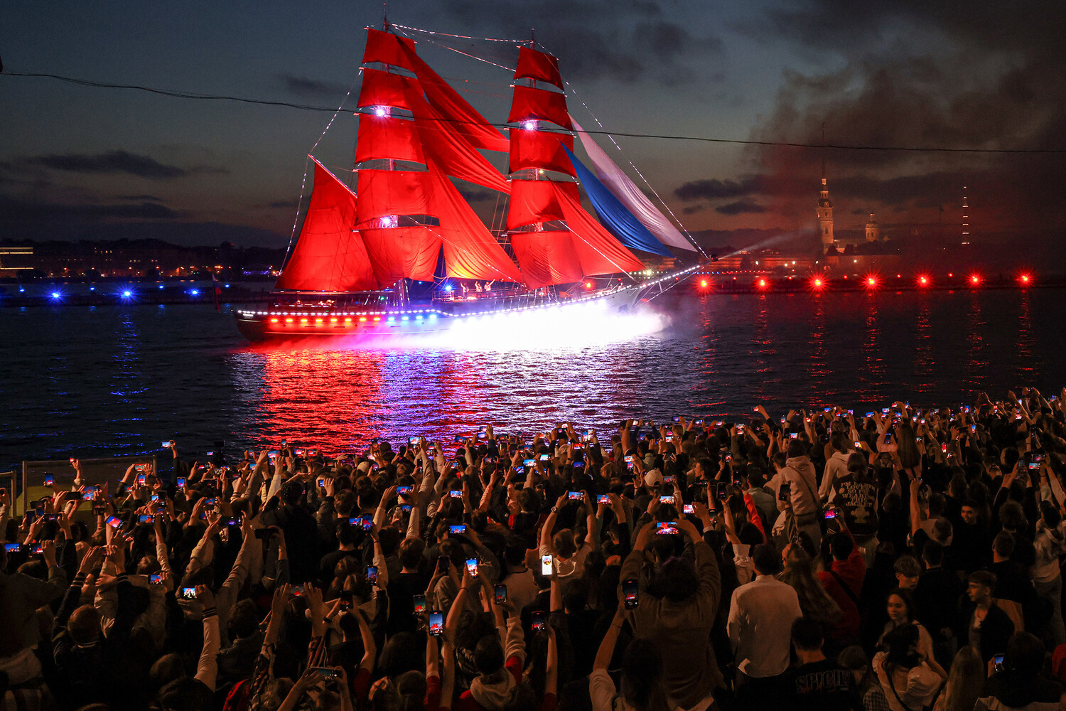 В ночь с 24 на 25 июня прошел самый красочный выпускной страны — праздник «Алые Паруса» в Санкт-Петербурге. Тысячи школьников отметили окончание учебы, проводив корабль с алыми парусами под залпы фейерверков. В этом году празднику исполнилось 55 лет с момента его основания.