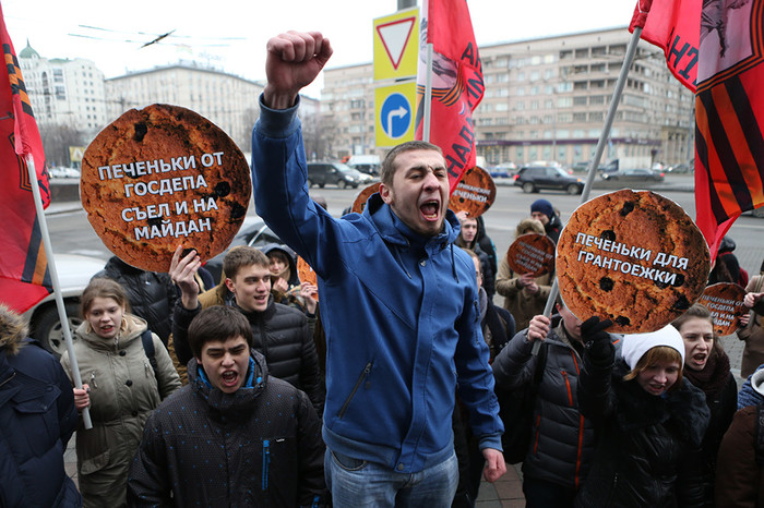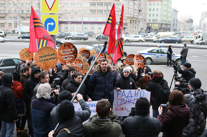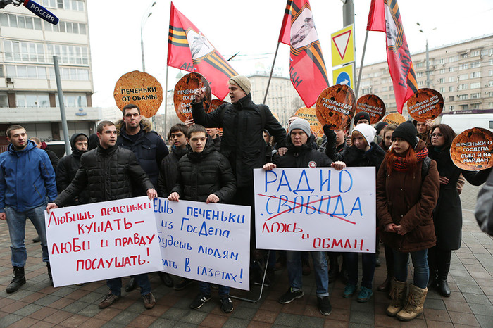 У здания, где находится офис радио «Свобода», а также расположена редакция «Газеты.Ru», прошла акция протеста активистов движения «Антимайдан», возмущенных обвинениями журналистов в том, что они якобы получают деньги за свою общественную деятельность. Как сообщил с места событий корреспондент «Газеты.Ru», в акции приняло участие около 30 человек.