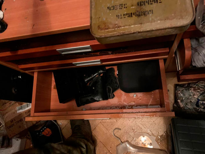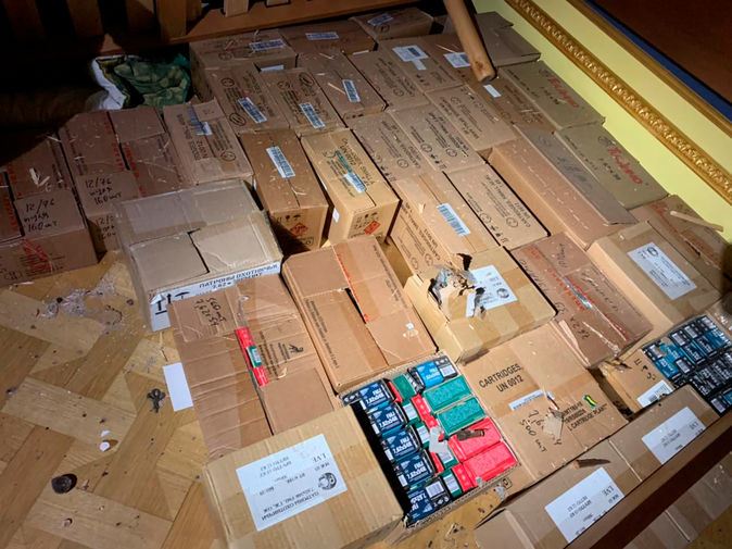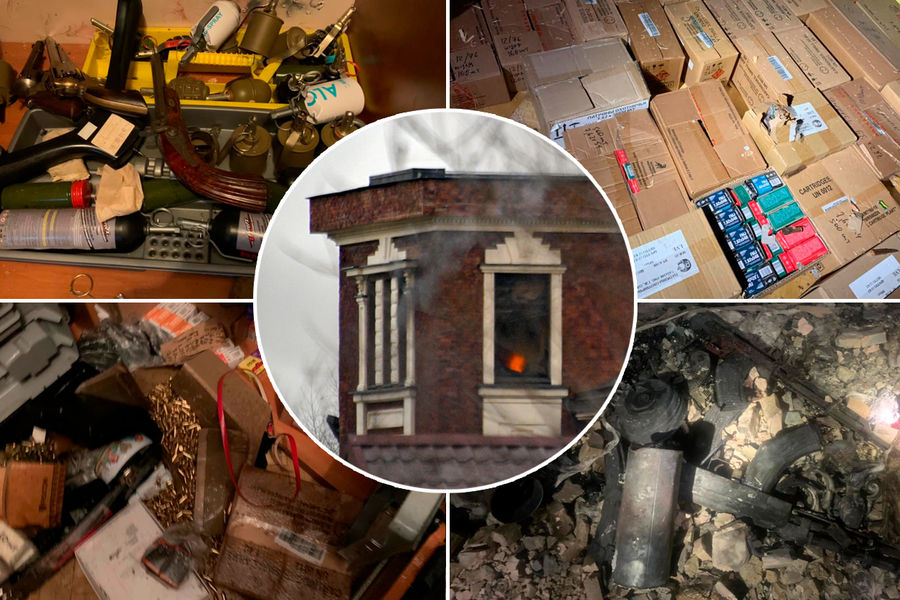 Депутат Госдумы Александр Хинштейн опубликовал фотографии, на которых видно оружие, в том числе в сгоревших помещениях, а также десятки коробок с патронами. В сопровождающем комментарии Хинштейн пояснил, что арсенал принадлежал мужчине из элитного поселка Новые Вешки в подмосковных Мытищах, который накануне вступил в перестрелку с силовиками.