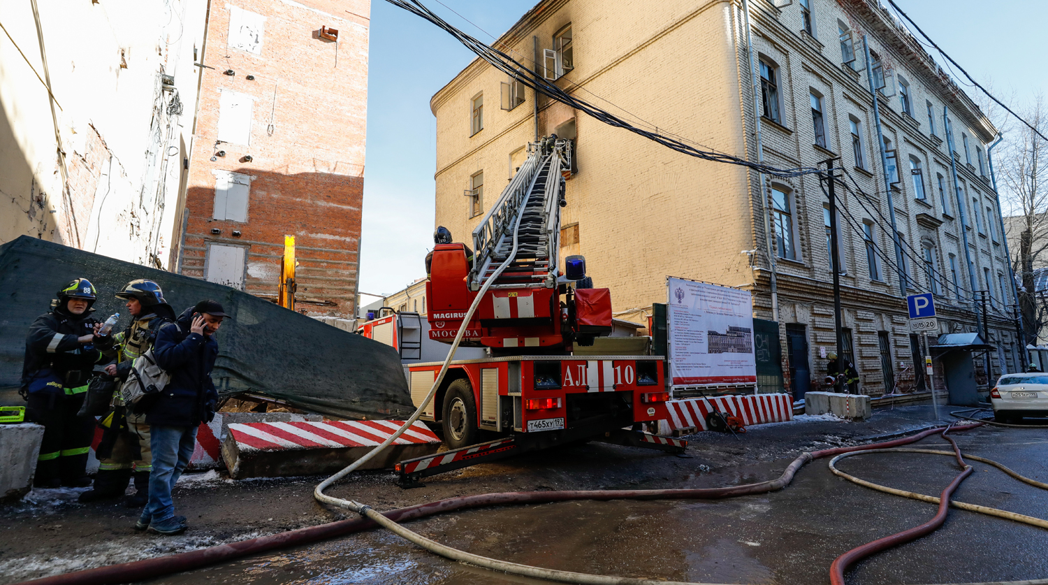 Пожар произошел на третьем этаже пристройки реконструируемого здания, информации о пострадавших нет. О причинах инцидента пока не сообщается. Кадры с места происшествия — в фоторепортаже «Газеты.Ru».