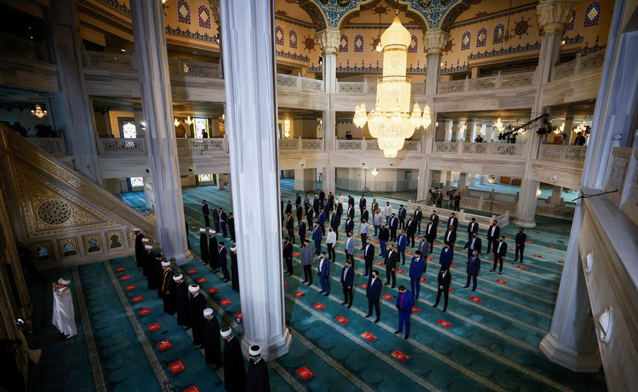 В московских мечетях в этом году мероприятия провели без прихожан, но с участием духовенства. В Соборной мечети организовали онлайн-трансляцию.