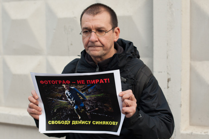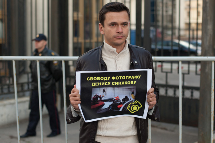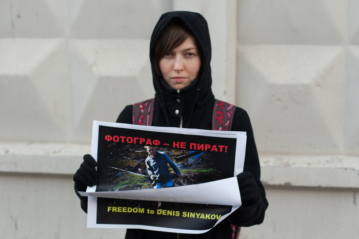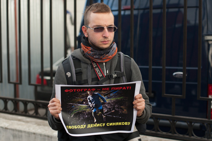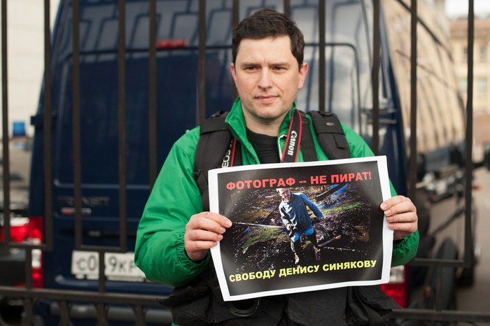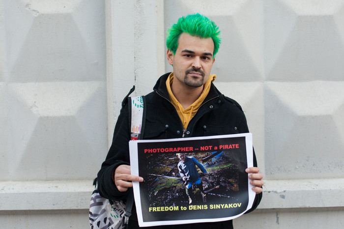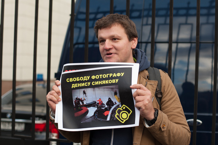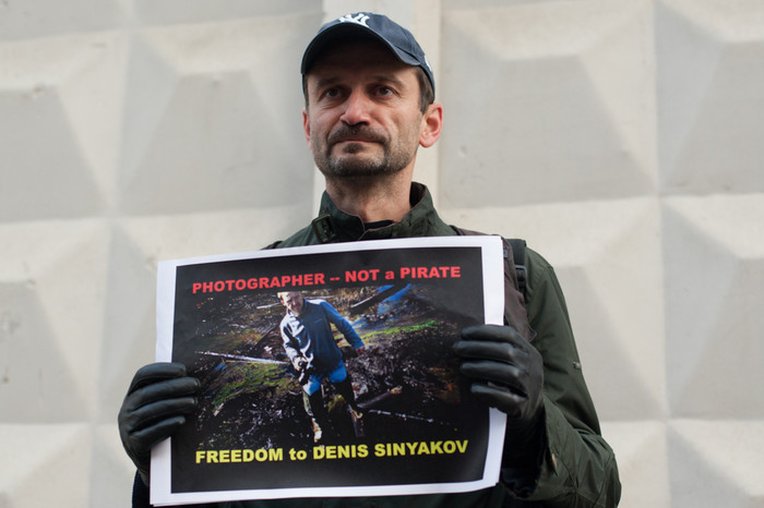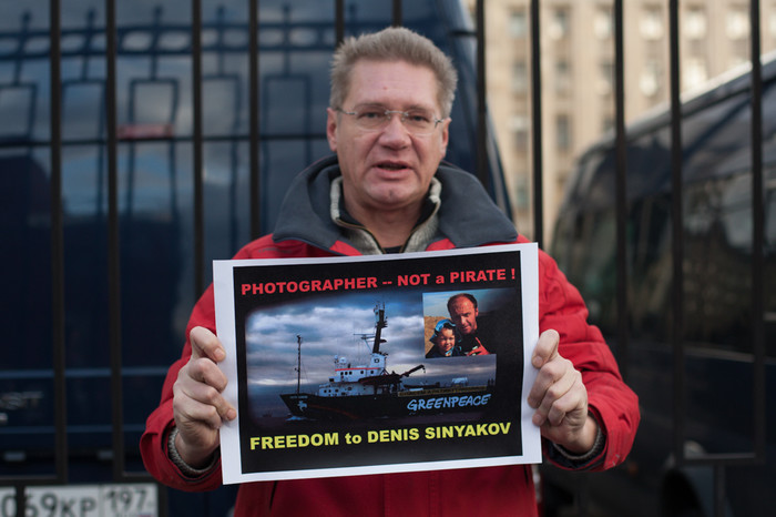 У стен здания Следственного комитета в Москве, в Техническом переулке прошла серия одиночных пикетов в поддержку фотографа Дениса Синякова, который был арестован на два месяца за участие в акции Greenpeace по захвату нефтяной платформы «Приразломная» в Баренцевом море. Около СК собрались фотографы и журналисты — около полусотни человек. Также на пикете присутствовала жена Синякова Алина. Собравшиеся держали распечатанные фотографии Синякова с захвата «Приразломной» с призывом освободить его. «Фотограф — не пират!» — было написано на одном из плакатов.