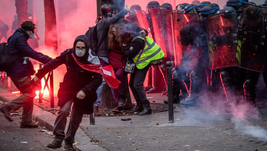 Лазерные указки и фейерверки: как протестующие громили Париж