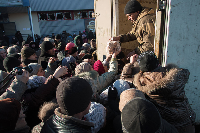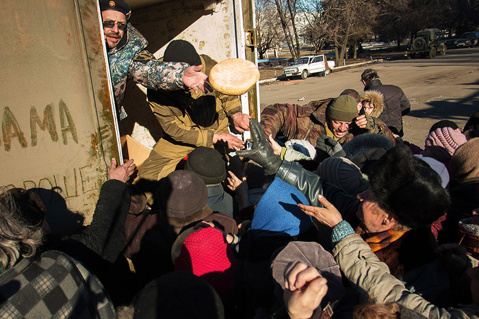 Жители города Дебальцево, которые прожили с лета прошлого года в убежищах, пока Дебальцево обстреливалось, получают гуманитарную помощь от ополченцев ДНР. Ранее еду, воду и помощь от Красного Креста и ООН завозили украинские волонтеры и спасатели. Однако последнюю неделю перед переходом города под контроль ДНР поставка продуктов была прекращена.