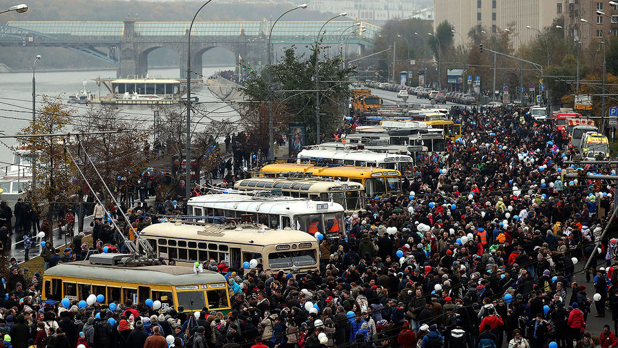В столице прошел праздник московского троллейбуса. Колонна уникальных образцов наземного городского транспорта прошла по городу от Филевского автобусно-троллейбусного парка на улице Дениса Давыдова до Фрунзенской набережной. Парад посетили около 50 тыс. человек.