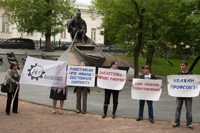 В Москве прошли два митинга работников НПО «Ижмаш», протестующих против низких зарплат и действий руководства оборонного предприятия. Группа активистов независимого профсоюза «Ижмаша» два часа пикетировала около офиса госкорпорации «Ростех», а затем перешла на площадь Краснопресненская Застава. В листовках они требуют снять с должности гендиректора Константина Бусыгина, а также директора по персоналу Екатерину Сугаренко, обвиняя их в развале рабочей команды. Активисты утверждают, что специалисты уходят с завода из-за низких зарплат – 5-7 тысяч рублей. Представители Ростеха вышли к пикетчикам, выслушали требования и пообещали досконально изучить все выдвинутые претензии и принять меры, если будут обнаружены какие-либо нарушения или недоработки. В НПО «Ижмаш» «Газете.Ru» сообщили, что комментариев не будет, так как никого из руководства на работе нет.