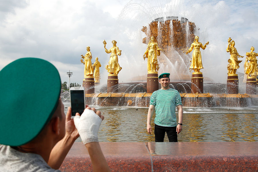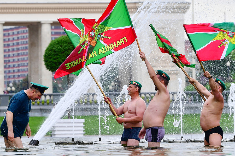 Для пограничников 28 мая – день, когда можно надеть парадную форму, собраться в парках или у монументов, возложить цветы к памятникам воинам-пограничникам в разных городах России. В Москве они приходят в Парк Горького, в Измайлово, в Сокольники, на Поклонную гору или на ВДНХ. Некоторые пользуются возможностью прыгнуть в фонтан. Как прошло празднование Дня пограничника в Москве, смотрите в фоторепортаже «Газеты.Ru».