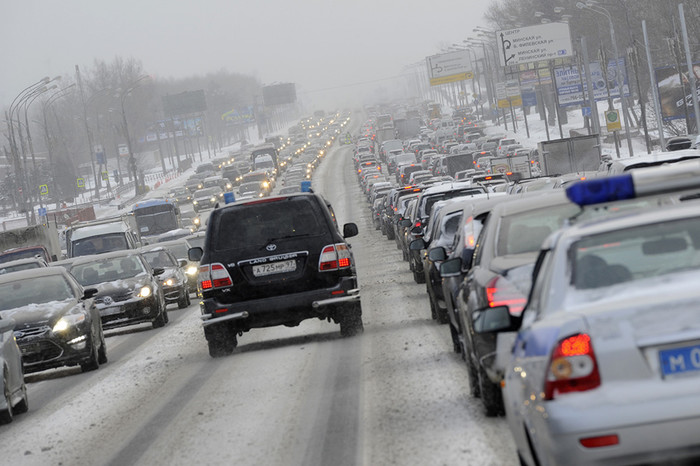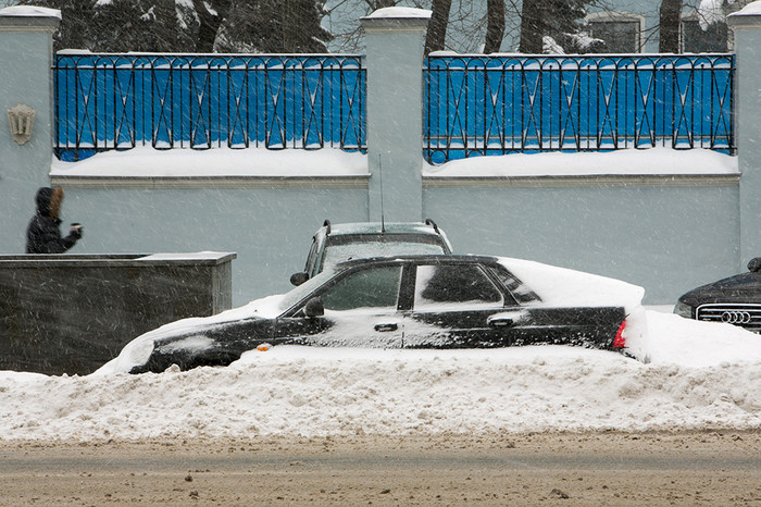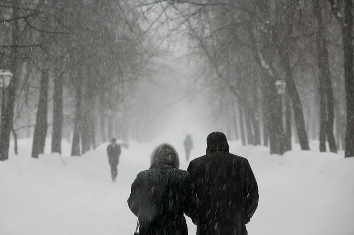 В Москве второй день подряд идет сильный снег. Циклон в центральный регион России пришел с Украины: там за выходные выпала полуторамесячная норма снега, а президент страны объявил в Киеве чрезвычайное положение.