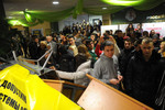 Протестующие студенты Российского государственного торгово-экономического университета утверждают, что забаррикадировали входы в здание, ожидая «рейдерского захвата» вуза ОМОНом.