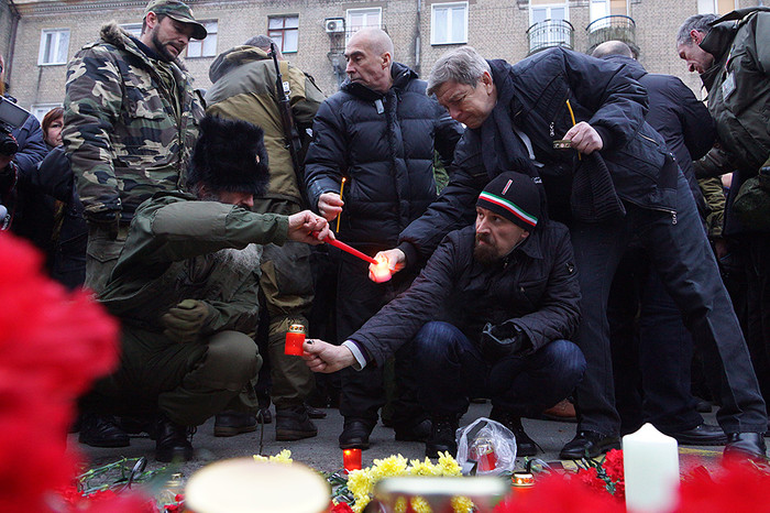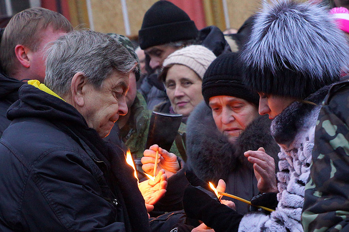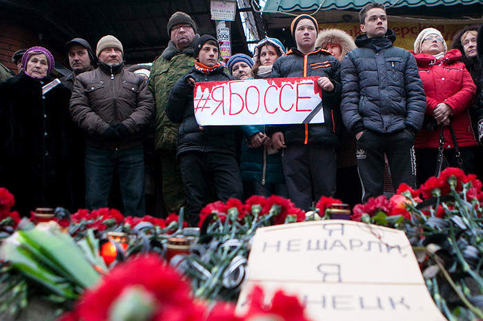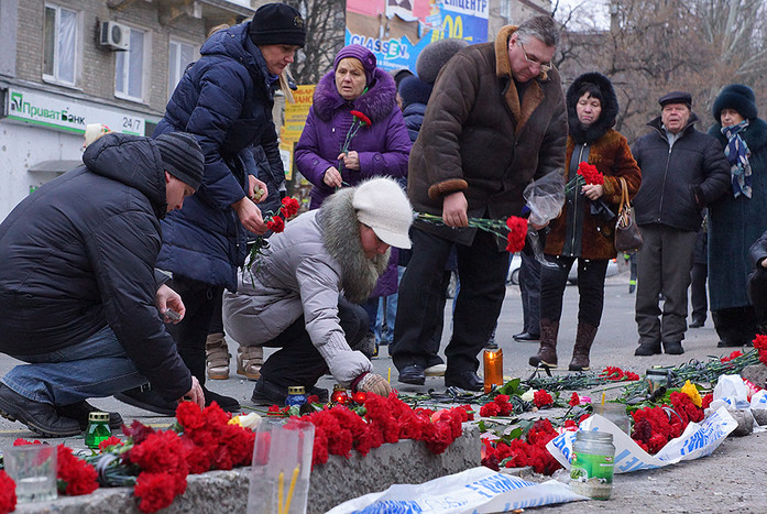 Траурный митинг и акция «Зажги свечу памяти» на месте артобстрела остановки общественного транспорта в микрорайоне Боссе. 24 января в ДНР объявлен траур по погибшим при обстреле остановки.