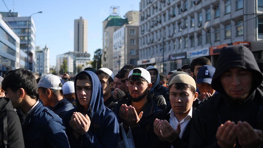 В воскресенье, 11 августа, мусульмане отмечают праздник жертвоприношения Курбан-байрам (На арабский манер — 'Ид аль-адха), которым завершается хадж. У Московской соборной мечети в Выползовом переулке по этому случаю традиционно собрались десятки тысяч верующих, чтобы совершить утреннюю молитву. За долгие годы жители прилегающего к мечети района уже привыкли к тому, что утром в день праздника станцию метро «Проспект мира» закрывают, а улицы и переулки рядом — перекрывают. Как прошел Курбан-байрам в 2019-м году — в галерее «Газеты.Ru».