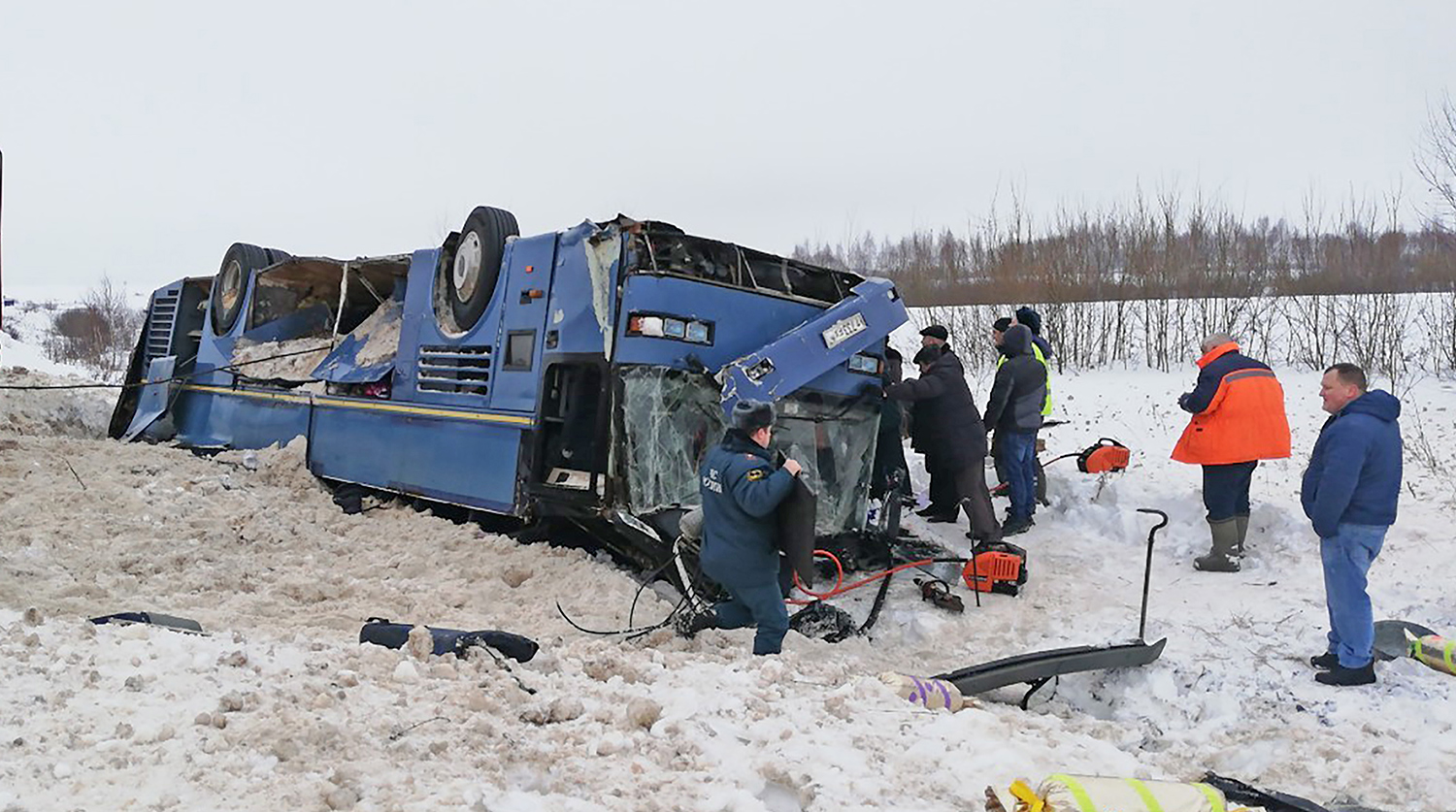 В результате ДТП с автобусом в Калужской области, который вез группу детей на конкурс в филармонию. По последним данным, пострадали 45 человек, из них 31 ребенок. Семеро погибших, из них 4 ребенка. Несколько человек находится в тяжелом состоянии, среди них дети.