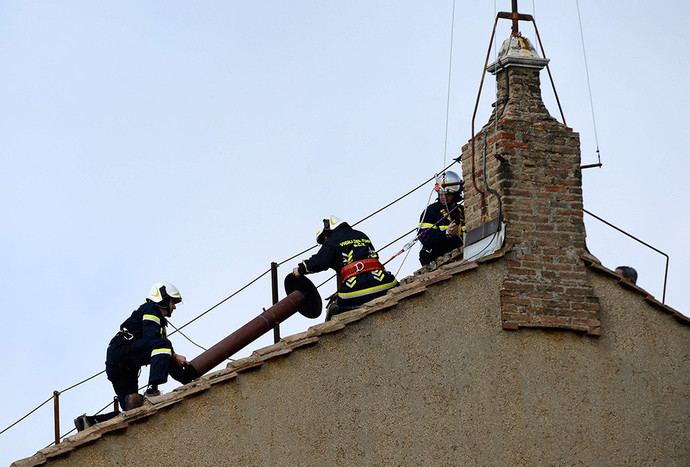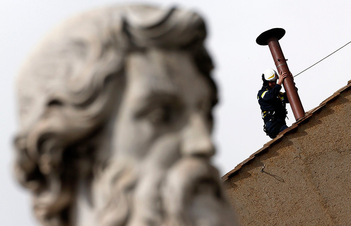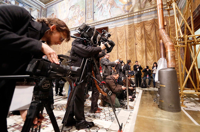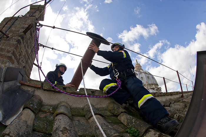 Первое голосование состоится во вторник в Сикстинской капелле вскоре после утренней мессы Pro Eligendo Pontefice в соборе Святого Петра, которую проведет глава коллегии кардиналов Анджело Содано. Вечером, по окончании сессии, из дымохода на крыше Сикстинской капеллы появится дым первых сгоревших бюллетеней — вероятнее всего, черный, что будет означать, что новый понтифик еще не выбран. Выборы понтифика может затянуться на несколько дней, если представителям высшего католического духовенства не удастся сразу выбрать достойную кандидатуру. Последние девять конклавов в среднем продолжались примерно по три дня. Перед началом голосования сотрудники Ватикана приняли всевозможные меры для того, чтобы никакая информация о ходе выборов не просочилась за пределы Ватикана. В Сикстинской капелле и резиденции Санта-Марта, где будут жить кардиналы во время конклава, установили глушители сигналов для электронных устройств. Рабочие расставляют стулья в Соборе святого Петра в Ватикане Папский герб Пия XII на полу Собора святого Петра в Ватикане Туристы на площади святого Петра в Ватикане Рабочие устанавливают красные занавеси на центральном балконе Собора святого Петра (т.н. «Лоджия благословений»), откуда новый папа произнесет свое первое напутствие католическому миру Рабочие устанавливают красные занавеси на центральном балконе Собора святого Петра (т.н. «Лоджия благословений»), откуда новый папа произнесет свое первое напутствие католическому миру Шатры мировых телевизионных каналов, освещающих ход конклава, над площадью святого Петра Рабочие устанавливают красные занавеси на центральном балконе Собора святого Петра (т.н. «Лоджия благословений»), откуда новый папа произнесет свое первое напутствие католическому миру Очередь за почтовыми марками специального выпуска у мобильного офиса почтовой службы Ватикана на площади святого Петра Корреспонденты мировых СМИ снимают печь в Сикстинской капелле, где в дни конклава будут сжигаться выборные бюллетени. Печь в Сикстинской капелле, где в дни конклава будут сжигаться выборные бюллетени. Столы для кардиналов в Сикстинской капелле Пожарные Ватикана устанавливают трубу на крыше Сикстинской капеллы. Когда конклав выберет нового папу римского, из этой трубы пойдет белый дым Пожарные Ватикана устанавливают трубу на крыше Сикстинской капеллы. Когда конклав выберет нового папу римского, из этой трубы пойдет белый дым Пожарные Ватикана устанавливают трубу на крыше Сикстинской капеллы. Когда конклав выберет нового папу римского, из этой трубы пойдет белый дым Пожарные Ватикана устанавливают трубу на крыше Сикстинской капеллы. Когда конклав выберет нового папу римского, из этой трубы пойдет белый дым