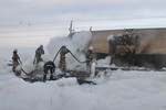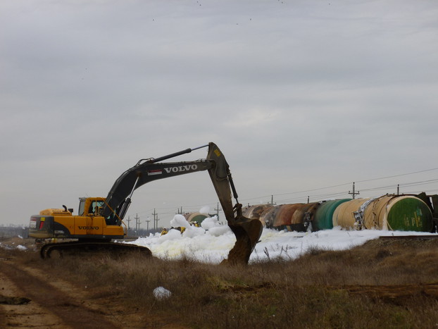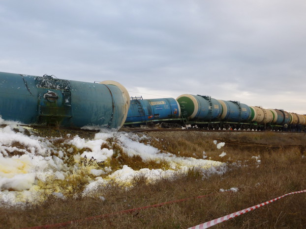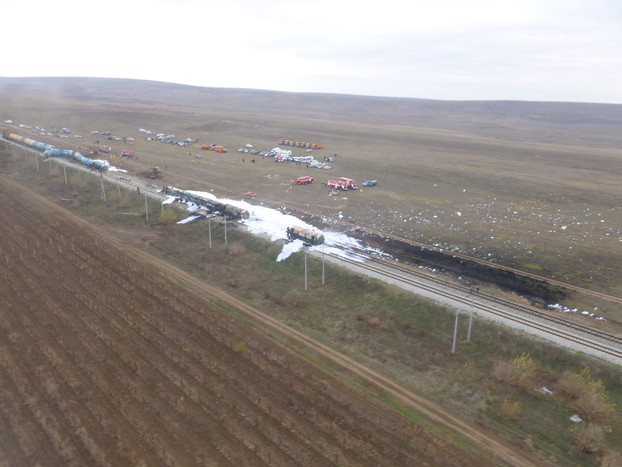 На Кубани неизвестные открутили крепления, соединяющие рельсы на железной дороге в Темрюкском районе. Из-за этого с пути сошли 12 цистерн с нефтепродуктами проезжавшего товарного поезда. Четыре вагона загорелись, но их удалось потушить прежде, чем они взорвались и сожгли весь состав. Пострадавших при аварии нет. На место оперативно прибыл новый глава МЧС, инспектировавший Крымск, претензий не высказал.