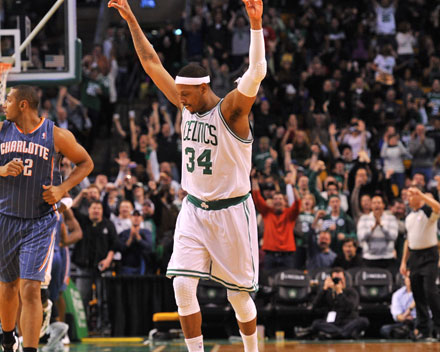 В матче с «Шарлотт» его 15 очков помогли ему занять второе место в списке самых результативных игроков «Бостона», обогнав при этом легендарного Ларри Берда. При этом для того, чтобы обойти Берда, капитану «Бостона» надо было набрать всего 10 очков, что он и сделал в третьей четверти. Этот рекорд был удостоен оваций со стороны болельщиков, приветствовавших Пирса. В настоящий момент у Пирса 21 797 очков, а лидером является Джон Хавличек с 26 395 очками, отыгравший за «Бостон» 16 лет (1962–1978).