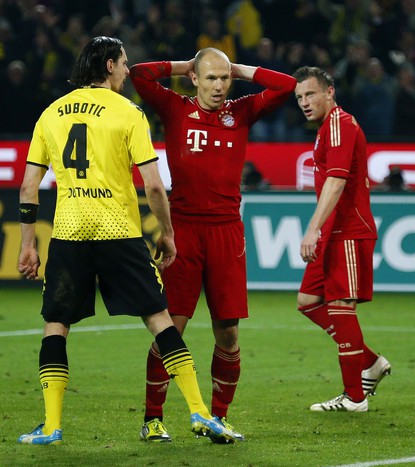 Но мюнхенцы не сдались. У гостей клуба нашлись силы и кураж на достойный ответ. В конце матча Арьен Роббен заработал пенальти. Голландец решил исполнить 11-метровый сам. Исполнил на редкость неудачно. Роман Вайденфеллер поймал мяч — «Сигнал Идуна Парк» ликовала. Больше всех радовался Невен Суботич. Серб подбежал к оконфузившемуся голландцу и что-то яростно прокричал в лицо.