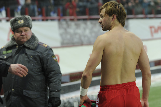 Однако в воскресенье, пока красно-зеленые летели в Москву (чемпионат России возобновится на следующей неделе), Сычев тренировался с минским «Динамо». В динамовской форме со звездочкой на груди.
