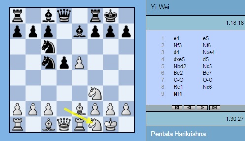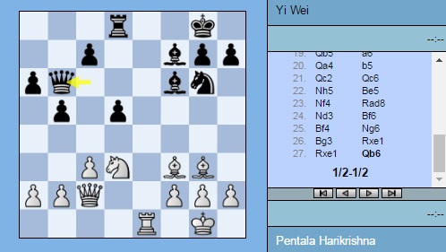 Пентала Харикришна и делящий второе место с Карлсеном и Эльяновым китаец И Вэй разыграли русскую партию.
