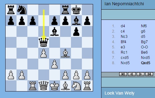 Ян Непомнящий развивается семимильными шагами. Ферзь россиянина уже занял боевую позицию в центре доски, король надежно рокирован. С другой стороны, у Ван Вели хорошая пешечная структура в центре, и ладья выведена на свободную диагональ. Но в остальном голландец явно отстает от Непомнящего.