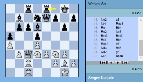 В партии Карякин — Со более предпочтительно выглядят черные. У Карякина нет какой-либо атакующей игры, а черные могут себя вольготно чувствовать на королевском фланге.