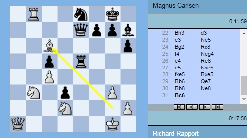 У Карлсена большие проблемы! Очень серьезная атака у белых, а на контригру у норвежца не хватает темпа. Раппорт должен побеждать, если не допустит какой-то грубой ошибки. Правда, такое у него уже было, когда он должен был побеждать Со, но умудрился проиграть.