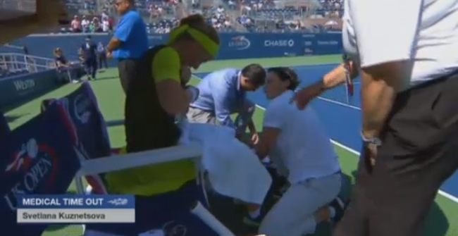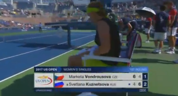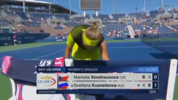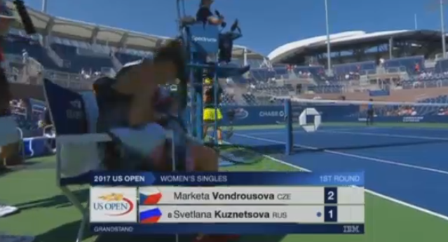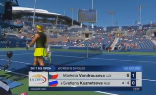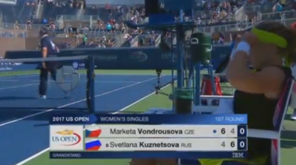 7:1! Чешка снова отбивает в аут! Светлана Кузнецова победила на тай-брейке и вышла во второй круг US Open! К сожалению было очень много ошибок в исполнении россиянки, но она показала недюжинный характер и вытащила встречу, в которой у соперницы был двойной матчбол! 18-летняя Маркета Вондроушова плачет в полотенце, сидя на корте. Жаль юную теннисистку, но у нее еще будет шанс проявить себя.