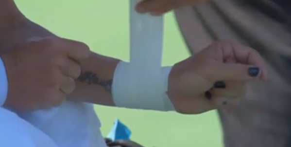 Победа в первом сете остается за Вондроушовой! 1:0 по партиями!Тем временем Кузнецовой заматывают руку в бинт.