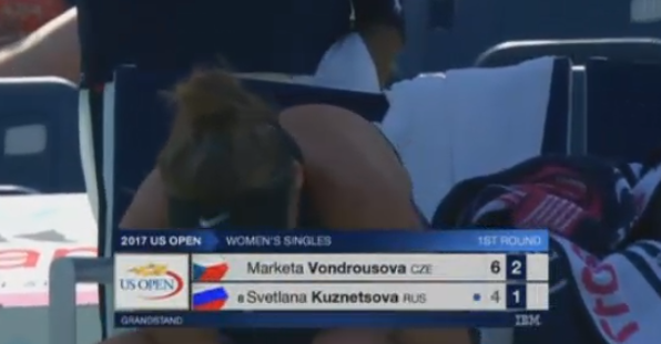 Кузнецова все-таки встает и направляется на корт. Сейчас будет ее подача.