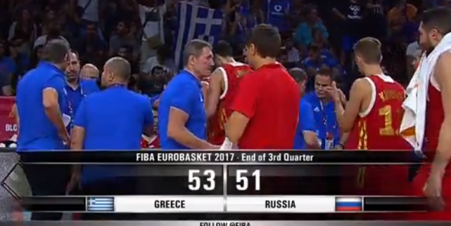 ¡Comienza el tercer cuarto! ¿Quin pasar a semifinales? (GRE 37-31 RUS | 9:54 | 3Q) https://t.co/5Kxq4ptT9E #EuroBasket2017 pic.twitter.com/RDapNi1eFG