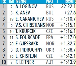 А все равно Логинов остался лидером. Правда, болгарин Красимир Анев теперь уступает ему всего 3,7 сек.