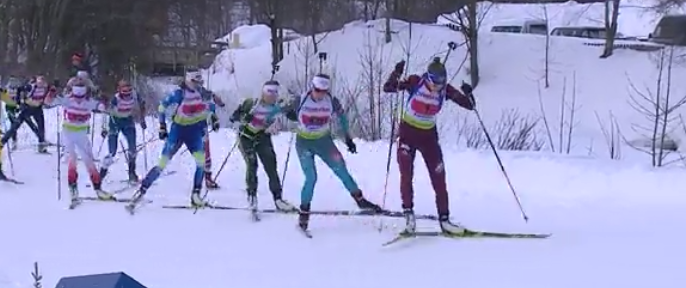 Тем временем Сливко, пробежавшая первый этап, дает интервью: «Конечно, я была бы довольна, если бы не промахнулась. На лежке немного засуетилась, и вылетел патрон — время потеряла. В третьей гонке уже тяжело выступать, но я сделала, что могла».
