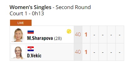 Итак, поехали! Шарапова на подаче, а Векич набирает первые очки.