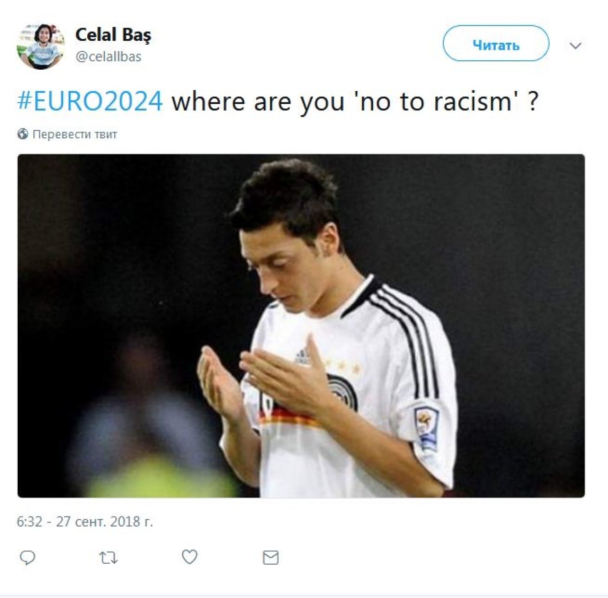 «Ну и где ваше обещание говорить: «Нет» расизму?» — отмечает другой пользователь социальных сетей, прикрепив к своему сообщению фотографию с Озилом.