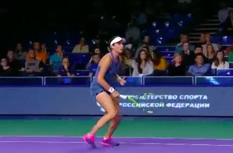 Уже 30:0 в пользу россиянки! Конта пыталась действовать агрессивно, но в итоге переборщила и форхендом послала мяч куда-то далеко за пределы корта.
