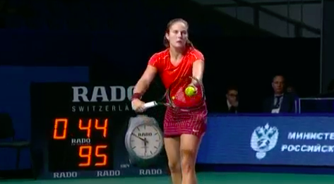 Однако Касаткина, видимо, не хочет легкой победы. Уже 40:40! Трижды россиянка сама попала в аут, а один раз Конта показала прекрасный удар, попав прямо по боковой линии — Дарья такого не ожидала.