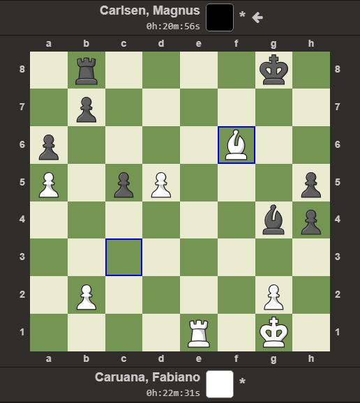Сегодня белыми фигурами играет американский гроссмейстер Фабиано Каруана. Стоит отметить, что в предыдущих партиях шахматисты, начинавшие белыми фигурами, в основном были вынуждены обороняться от черных.