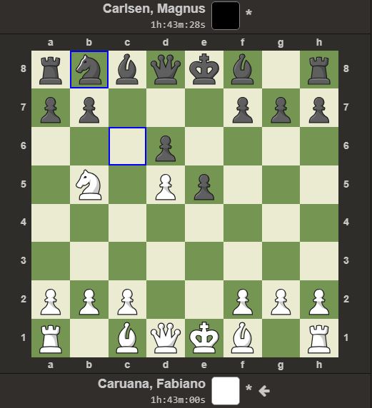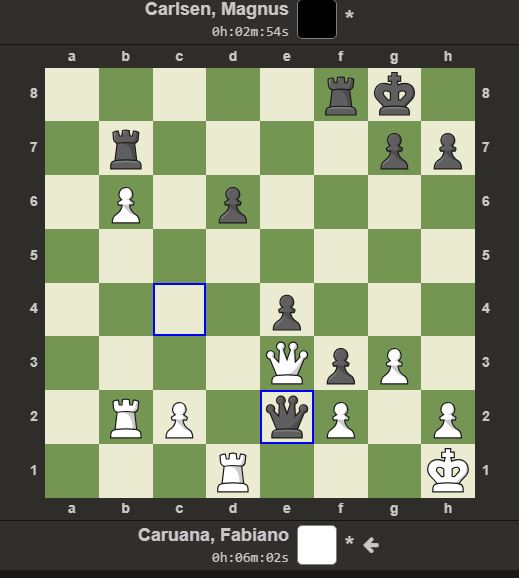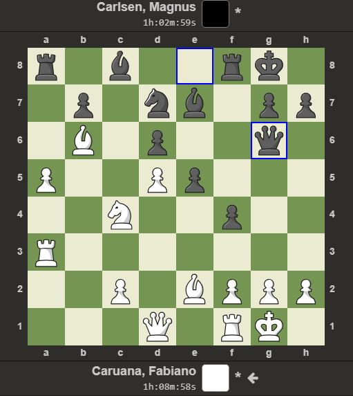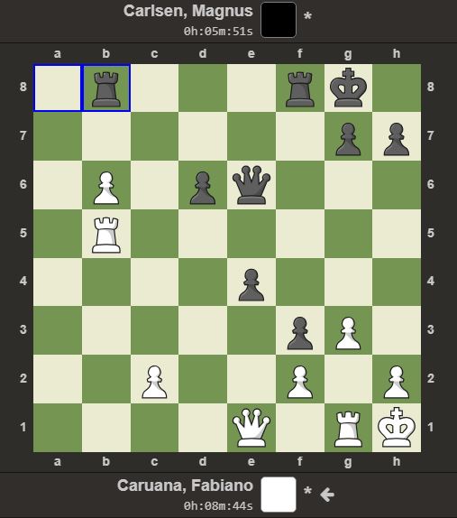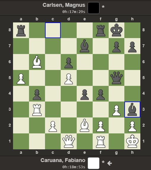 После хода ладьей на b8 от Магнуса Фабиано сразу же перевел ферзя на е3.