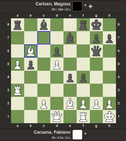 Подумав, Каруана решил перевести слона на f1. Усложняет себе игру Фабиано.