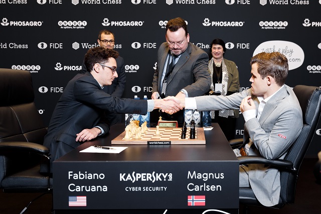 Фабиано Каруана и Магнус Карлсен в матче за шахматную корону